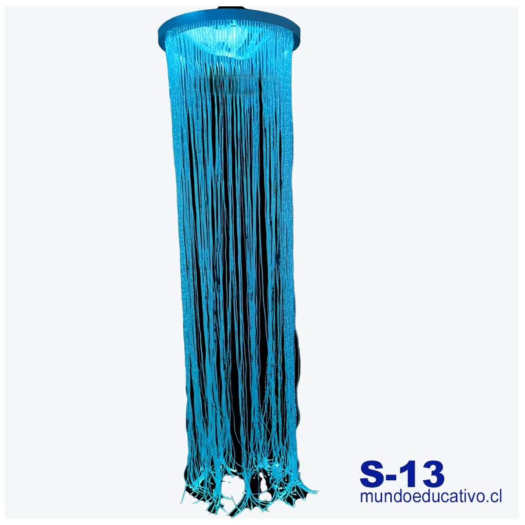 La Cascada de Fibra Óptica es un recurso sensorial compuesto por múltiples filamentos luminosos que caen en forma de cortina, generando un ambiente visual relajante y atractivo. Sus fibras suaves, seguras y flexibles emiten luces LED cambiantes o fijas, creando una experiencia multisensorial que invita al contacto, la observación y la exploración táctil.